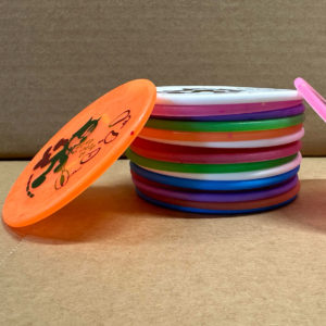 The brand-spanking PICO mini/bag tag. These are a 2.5″ diameter, 12 gram micro-mini that can be made as a bag tag, or even better, a soda saver!